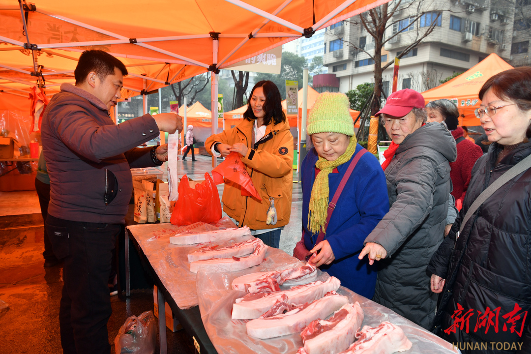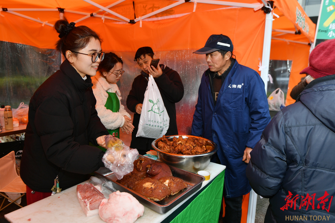 长沙县北山镇明月山村的艾湘猪成市集“爆款”。负责人常应根介绍,半天就卖出四五十斤艾湘猪“发肉”。这些猪以艾叶、五谷杂粮和中草药为食,养殖全程不使用抗生素、生长激素,是实打实的健康猪肉。