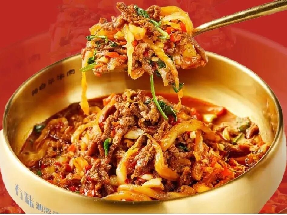 小炒黄牛肉这道菜的灵魂在于对“鲜"的极致追求,从屠宰到上桌严格控制在24小时内,大火快炒的烹饪手法让牛肉滑嫩可口。