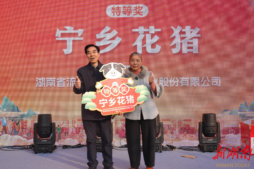 颁奖仪式上,湖南省流沙河花猪生态牧业股份有限公司董事长李述初亲自登台,将特等奖的奖牌郑重交到了大姐手中。大姐手捧特等奖奖牌,难掩内心的激动,喜滋滋地对着话筒说道:“这头猪收得心里真是太高兴了,这下家里年货算是置办得顶呱呱,肯定能回家高高兴兴过个热闹年!”现场响起了热烈的掌声和欢呼声,气氛瞬间达到了高潮。