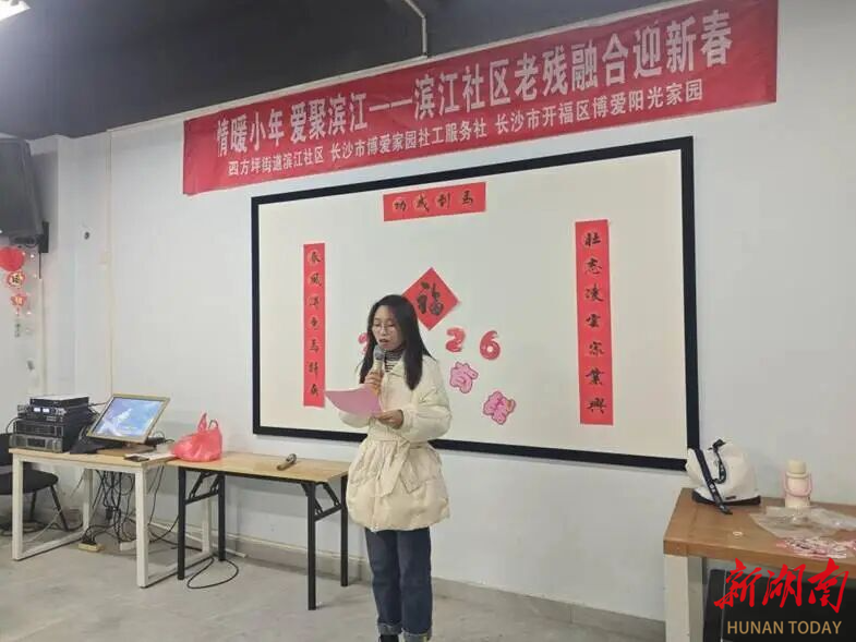 湖南日报·新湖南客户端2月11日讯(通讯员 易晓薇 吴果丽)小年至,年味浓。2月11日,农历小年,长沙市开福区四方坪街道滨江社区居家养老服务站内暖意融融、笑语不断。一场以“情暖小年 爱聚滨江”为主题的老残融合迎新春活动温馨开展。活动由滨江社区、长沙市博爱家园社工服务社与开福区博爱阳光家园联合执行,社工与志愿者们全程陪伴社区老年人、残疾人朋友一起包饺子、话家常,在动手协作与亲切交流中传递社区温暖,共迎新春佳节。