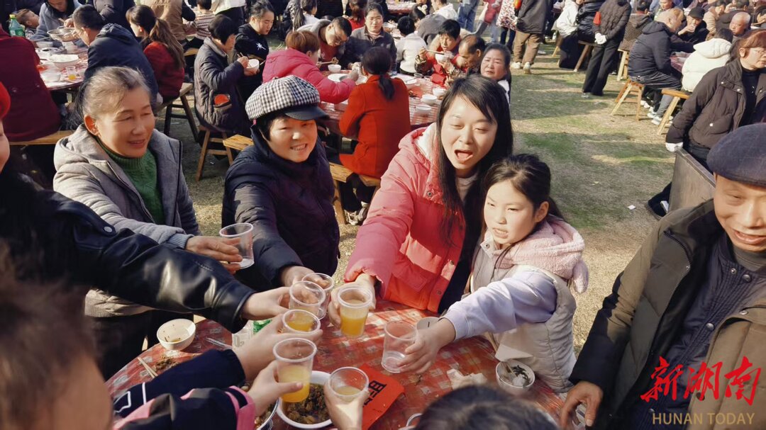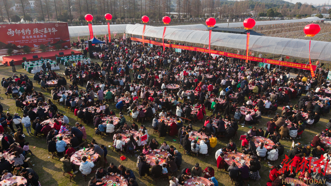 湖南日报·新湖南客户端2月11日讯(记者 曾楚禹 万丽君)腊月廿四南方小年,位于长株潭生态绿心腹地的雨花区跳马镇石燕湖村张灯结彩、喜气盈门。以“雨邻有约庆新春·村企同心筑家园”为主题的团圆宴温情开席,近3000名村民、企业代表及来自株洲、湘潭的乡亲围坐252桌宴席,共品年味、共话情谊。