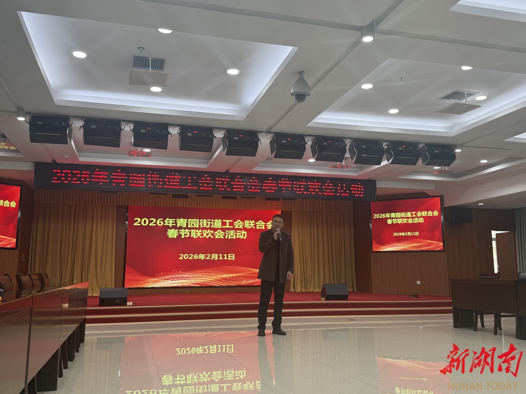 湖南日报·新湖南客户端2月11日讯(通讯员 徐玲)2月11日上午,长沙市天心区青园街道工会联合会2026年“骐骥驰骋 势不可挡”春节联欢会举行。街道工会全体会员、青园城管执法中队及青园市场监管所工作人员等百余人欢聚一堂,共迎农历小年,同贺新春佳节。当天,街道下辖5个社区工会也同步举办了社区春节联欢会。
