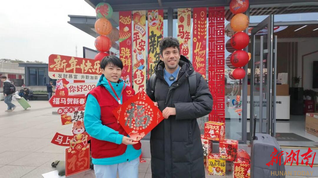 湖南日报·新湖南客户端2月12日讯(记者 肖霄 通讯员 谢光满 周友红)“小年快乐!这副‘一马当先’的春联送给您,祝您归途顺利!”2 月 11 日,长沙火车站西广场红火炬雷锋志愿者服务站前暖意融融,一场主题为 “情满小年・暖冬行动” 的文旅志愿服务活动在此温馨启幕。