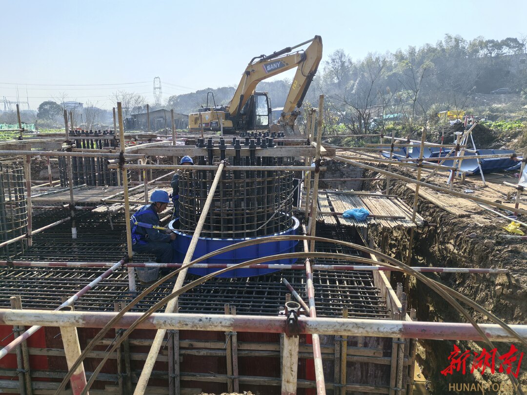 在长沙县长龙街道,500千伏长沙县变电站配套送出工程现场机械轰鸣,多台电建钻机、履带式吊车同步作业,一座座铁塔正在拔地而起,铆足干劲向今年4月投产目标冲刺。
