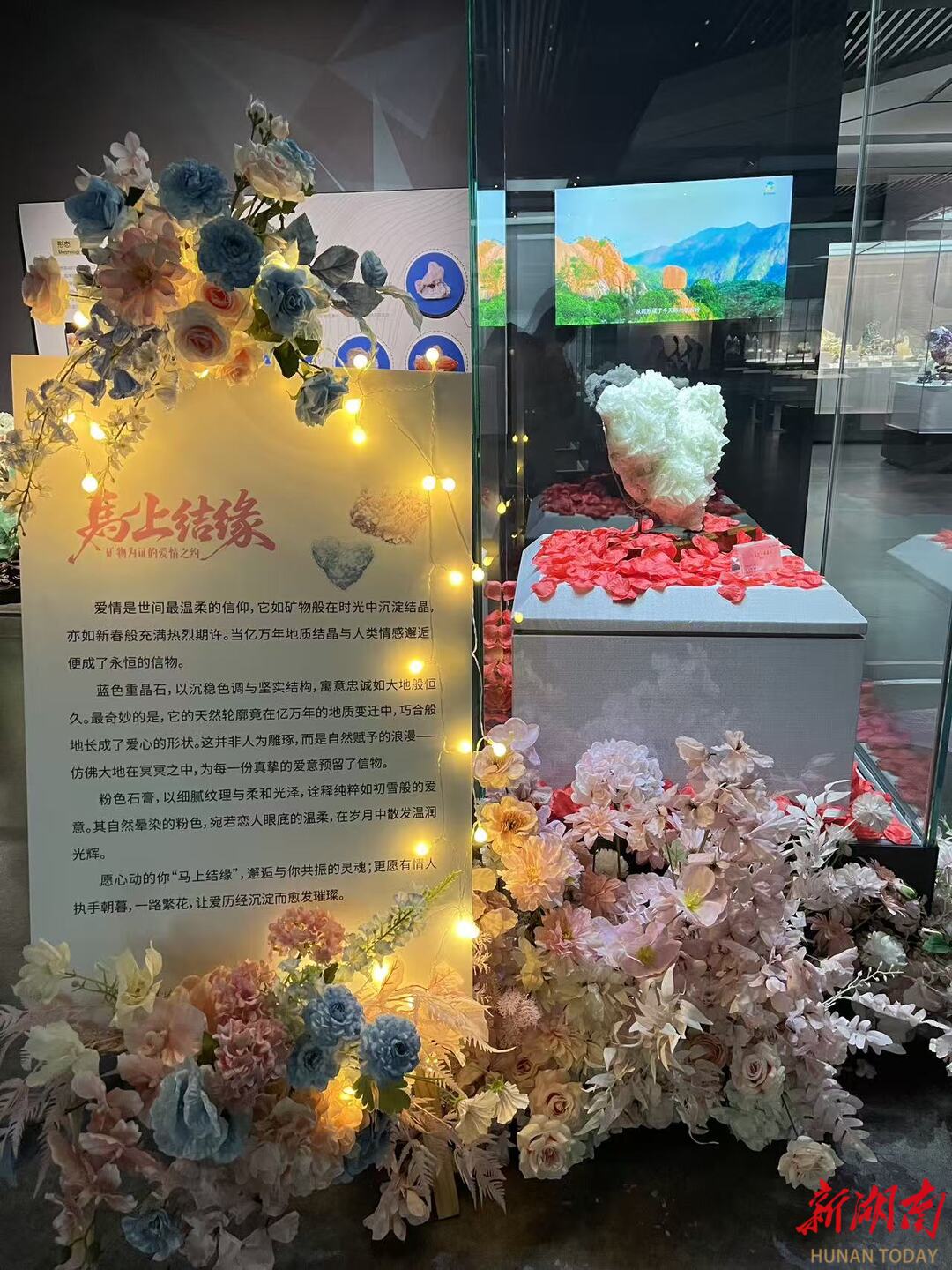 2月14日情人节,我们特别推出“马上结缘”微型主题展!展中爱心状的蓝色重晶石,象征着爱情里的忠诚与坚定;柔美的粉色石膏,恰如其分诠释出温柔浪漫的爱意。现场还贴心准备了爱心气球、情侣头纱、爱情主题标语牌等拍照道具,邀你和亲友定格专属甜蜜瞬间!