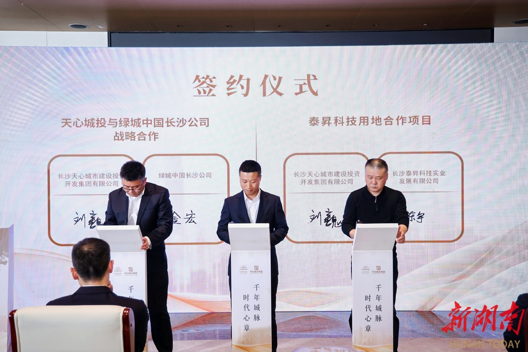 推介现场,天心城投集团与绿城中国、泰昇科技成功签约;天心文旅集团与中交城投、翼腾体育成功签约;天心城市运营集团与华菱电子、湖南省机械化施工公司成功签约,6家企业正式加入天心融城“合伙人”阵营,为区域发展注入首批新活力。绿城中国华中公司总经理助理、长沙公司总经理金宏杰,中铁房地产集团长沙置业有限公司总经理周玉明作为企业代表发言,纷纷表示看好天心发展潜力,将加大对天心区的投资力度。