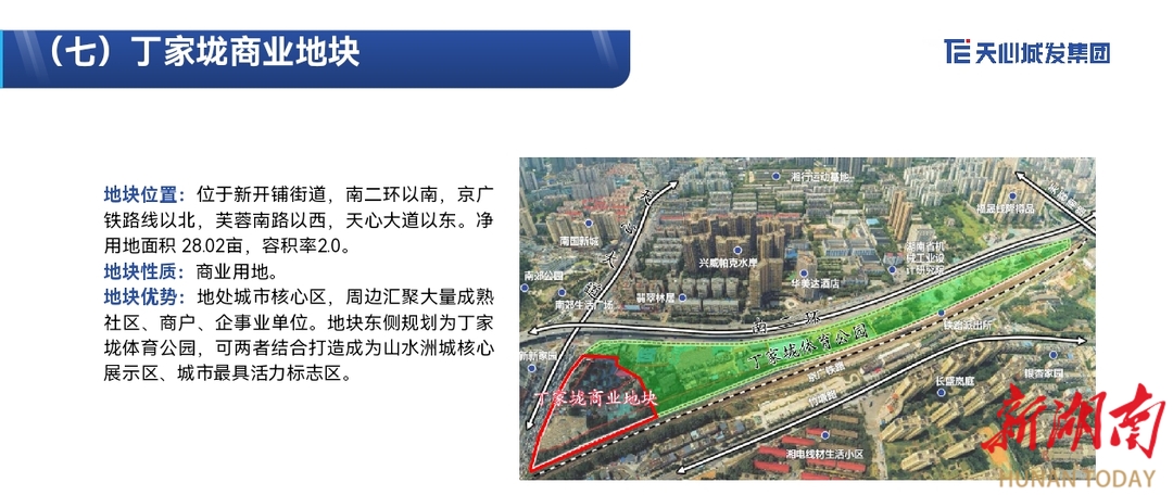 立足长株潭融城核心定位,天心区锚定2026年城市发展目标,本次推出的地块与片区可满足多元开发需求。其中,狮子山地块毗邻核心商圈,承接主城高端住宅需求;麻园塘地块位于正地铁口,周边教育资源丰富,拟打造区域性精品住宅项目;省电力公司及周边地块、丁家垅商业地块将建设区域级商业服务新核心;长机医疗用地周边高端住宅云集,适合精准医疗、康养服务产业落地;肉联厂工业遗址公园以2.9万平方米老厂房为基底,为“文化+科创”产业预留发展空间;天悦12号地块、长大园区地块配套设施完善,将打造新一代品质居住产品。